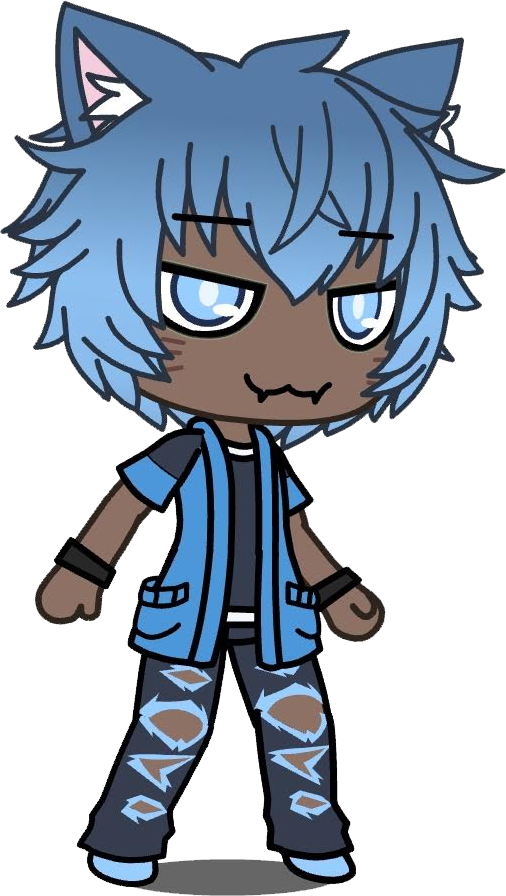 Kai has blue hair and blue animal ears. His eyes are an icy blue, and his skin is brown. He wears black wristbands, a blue jacket with grey sleeves rimmed with blue, a grey shirt, and dark blue ripped jeans with blue shoes.